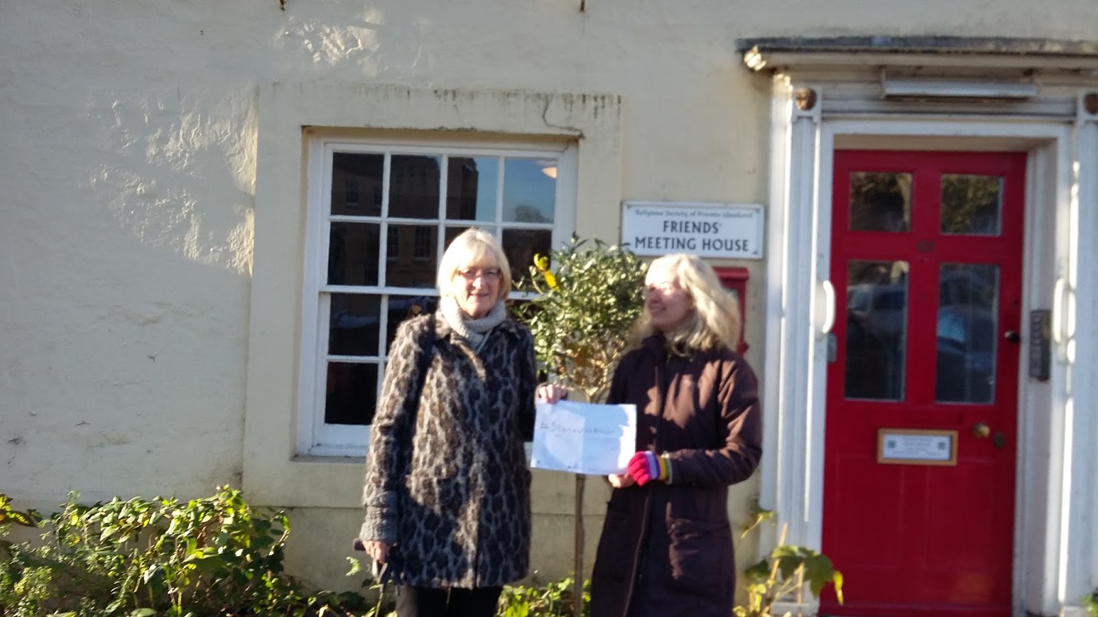 The other thing I discovered is how fantastically supportive the Quakers are, they just said fine, of course you can do that outside the building, so I wasn't on my own doing it, I had a whole building and a whole set of people behind me. I had decided I'd stand beside a tree near by if they had said it was contrary to their ethos. I also found out that the sun shines there in the mornings, convenient :)